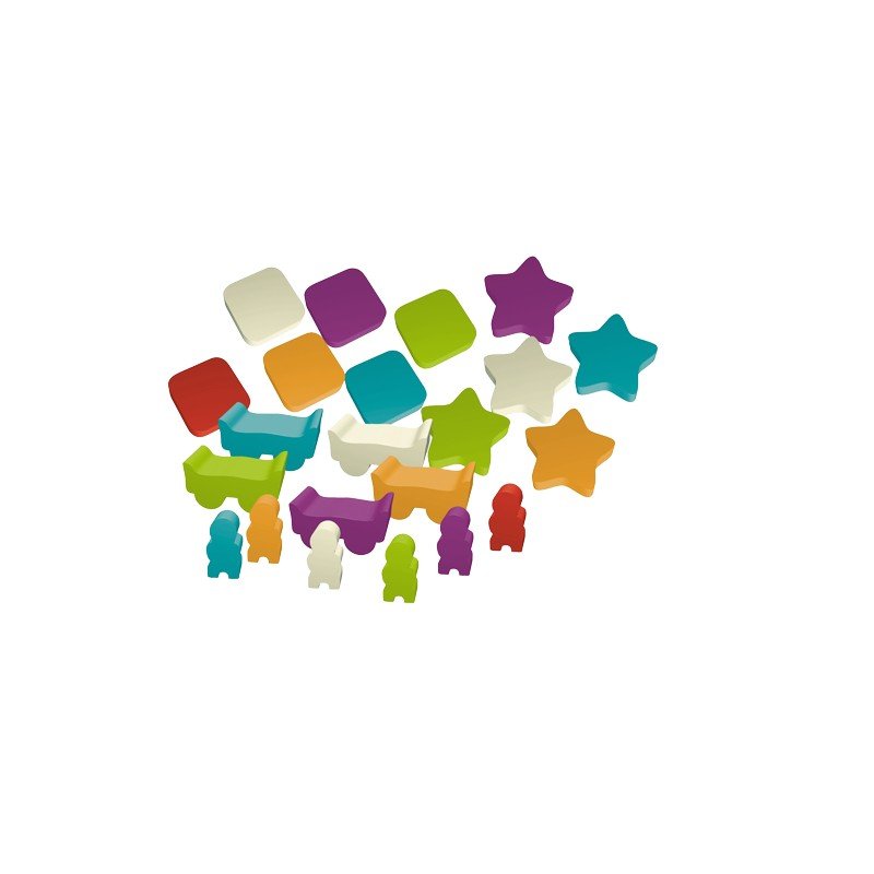 ¡Dentro de esta caja hay 504 juegos!: 61 piezas tablero, 296 fichas de madera, 421 fichas de cartón, 160 cartas de juego, el libro de los mundos, ¡y mucho más!