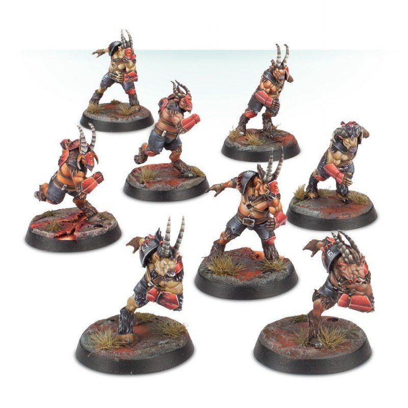 Este kit de plástico multicomponente contiene las piezas necesarias para montar a los Doom Lords, un equipo de Blood Bowl de Chaos Chosen. El equipo consiste en 4 Chaos Blockers y 8 Beastmen; las cabezas de los Beastmen son intercambiables, lo que significa que puedes personalizar las aberraciones cornudas que sacas al campo. Las cabezas de los Blockers también son intercambiables entre ellas.