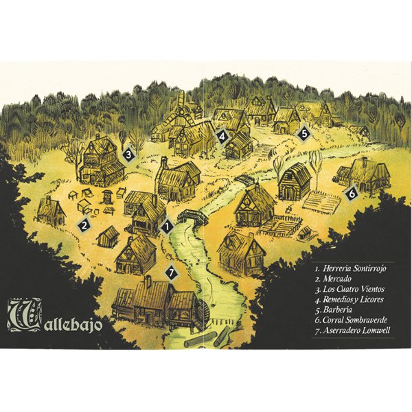 En este escenario, el entorno es un protagonista más. Vallebajo se sitúa “donde los caminos ya no importan”, un lugar liminal al final de la tierra conocida. Aquí, el pueblo viste de luto riguroso y los ramos de flores blancas en las puertas no son señal de celebración, sino de protección y miedo. La Bestia Blanca acecha desde el Bosque, una sombra en los ojos de los habitantes, buscando arrastrar a los incautos al fondo del lago.
