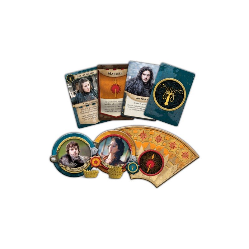 ¡Lo que está muerto no puede morir! Juego de Tronos: El Trono de Hierro – Las Guerras Veniderasañade la Casa Greyjoy y la Casa Martell para ampliar hasta siete el número de jugadores. Los Greyjoy toman rehenes para conseguir lo que quieren. Los Martell buscan la venganza por medio de enrevesadas maquinaciones. ¡Lucha por el honor de tu casa y aumenta el número de contendientes que intentarán hacerse con el Trono de Hierro en Las Guerras Venideras!