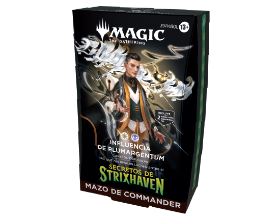 El mazo Silverquill Influence incluye todas las cartas necesarias para jugar en formato Commander, con un enfoque temático en la facultad Plumargéntum. Cada carta ha sido seleccionada para potenciar sinergias de control, manipulación y generación de caos, ofreciendo partidas dinámicas y estratégicas.