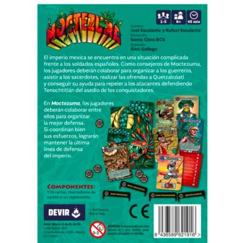Moctezuma es un juego diseñado por los hermanos Rafael y Joel Escalante, una dupla de diseñadores de juegos Mexicanos. Nos han hecho llegar esta interesante propuesta desde la tierra en la que se desarrolla la acción del juego, y es así en gran medida porque estos autores llevan ya bastantes títulos con temática mexicana a sus espaldas. Además hemos podido contar con la inestimable ayuda de nuestra compañera Lorena Mancilla, de la oficina de Devir México, que ha hecho una prolija labor de supervisión cultural para asegurarnos de que el juego encaja de la mejor forma posible con el periodo histórico que refleja.