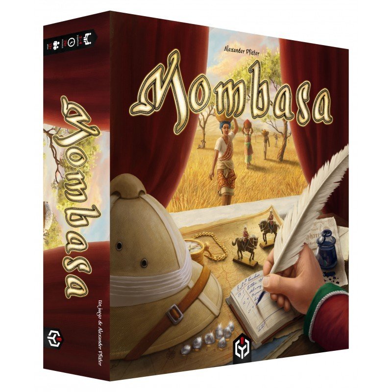 Como se juega a MOMBASA el juego de mesa: En cada turno se jugarán cartas de la mano para realizar acciones. Esas cartas se descartarán y las cartas jugadas anteriormente podrán volver a jugarse utilizando una novedosa mecánica de rotación de cartas de la mano al tablero.
