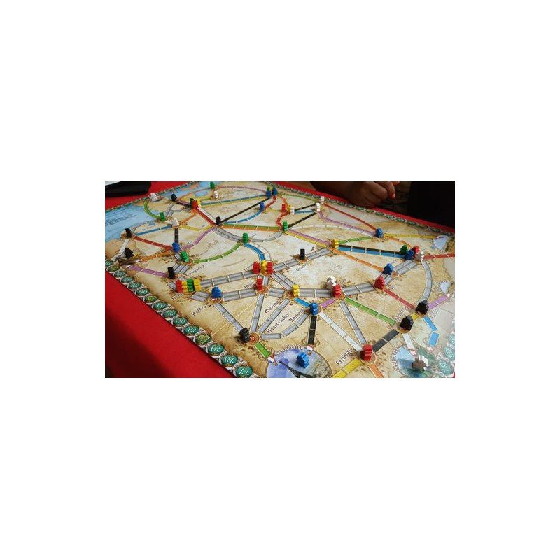 Ticket to Ride: Germany combines most of Zug um Zug: Deutschland and the Deutschland 1902 expansion in one box. Zug um Zug: Deutschland, published solely for the German and Austrian market, consisted of the same map as Ticket to Ride: Märklin, but ZuZ:D didn’t include the passenger mechanism from Märklin in which players scored additional points by moving passengers from city to city. The Deutschland 1902expansion introduced a different method of scoring passengers, and that method is now present in this collection.